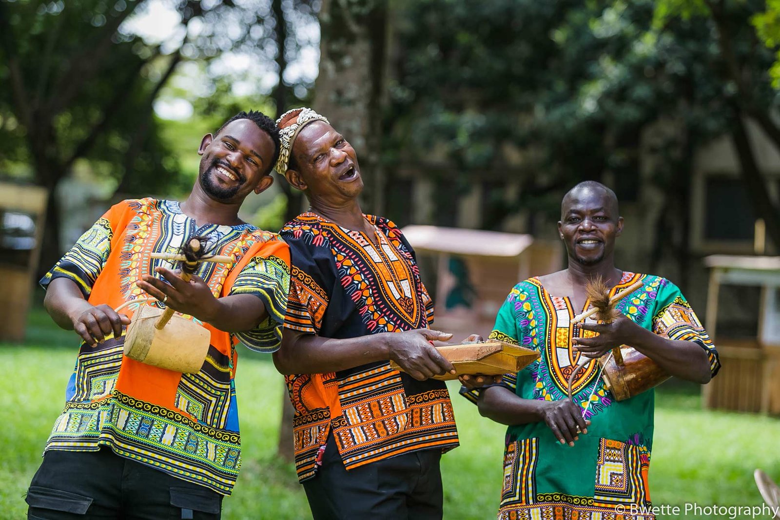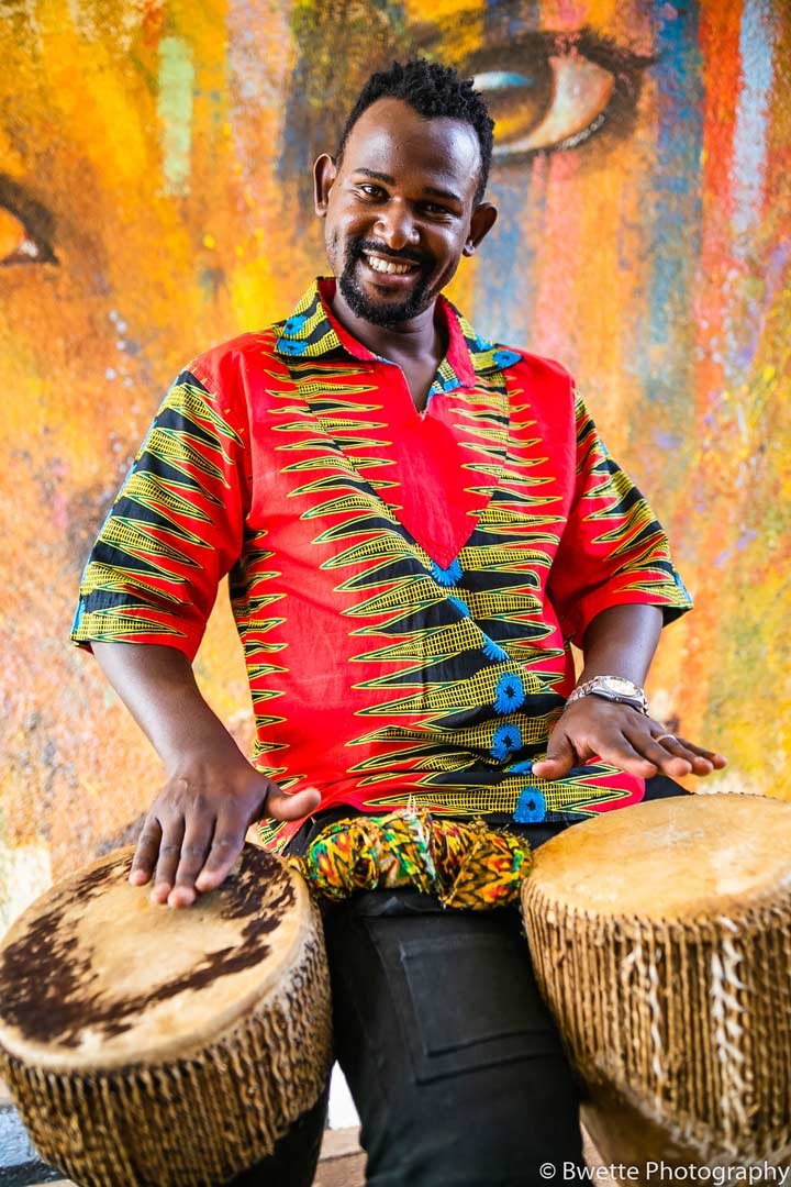 Percussion Discussion Afrika started in 1997 as the result of one man's dream: already an established percussionist and songwriter, Herman Ssewanyana, famously known as Omwana We Nsenene. Though renowned for his conga playing with dance-hall giants the 'Afrigo Band,' his musical roots lie far from the nightclubs of Uganda's big cities. Ssewanyana's first instruments were not the congas, but the nankasa; mpuunyi; namunjoloba and engalabi - traditional drums played by the tribal peoples of the East African country, Uganda for centuries. Sadly, these instruments (along with Ugandan traditional harps, flutes, fiddles, and xylophones) are rarely heard. But now with Percussion Discussion Afrika, Ssewanyana brings them back from obscurity straight onto the world stage.nnnPercussion Discussion Afrika introduced a new sound on the Ugandan music scene, creating a unique identity with a sound of their own. Their performance is driven by folk drum beats, accompanied by several melodic instruments, and bringing the sound of melodic drums at the forefront. n